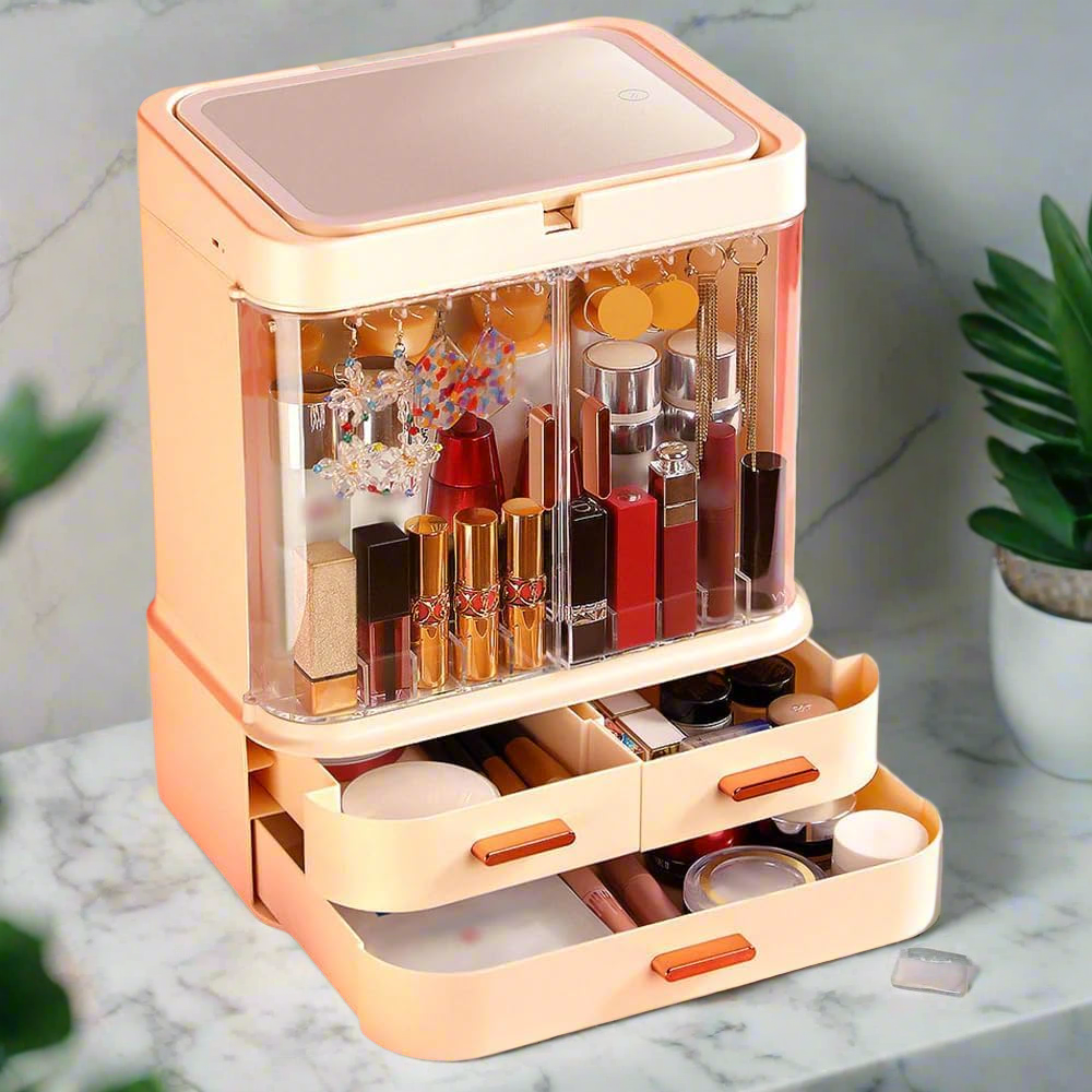 Organisez votre espace beauté avec raffinement grâce à notre Boîte de Rangement à Écran LED.